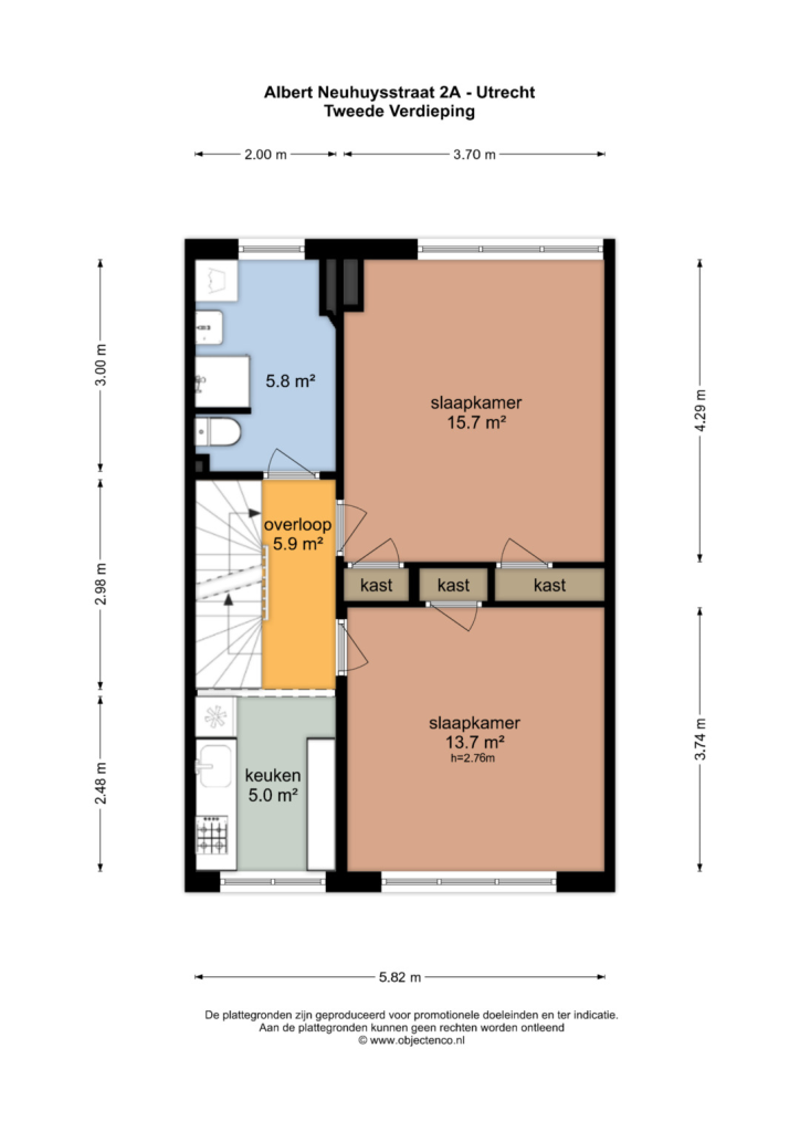 Via de overloop bereikt u de tweede verdieping, waar zich nog eens twee ruime slaapkamers bevinden. Beide kamers zijn prettig van formaat en dankzij de raampartijen heerlijk licht. Hierdoor zijn ze uitstekend geschikt als comfortabele slaapkamers, maar ook ideaal in te richten als werk-, studie- of hobbykamer. Tussen de kamers bevindt zich een praktische kastenwand, die zorgt voor extra opbergruimte. Op deze verdieping bevindt zich daarnaast een tweede keuken, die van alle gemakken is voorzien. Dit biedt extra mogelijkheden, bijvoorbeeld voor een inwonend kind, gastenverblijf of een combinatie van wonen en werken aan huis. Verder is er op deze verdieping een tweede badkamer, voorzien van een douche, wastafel, toilet en aansluiting voor de wasmachine.