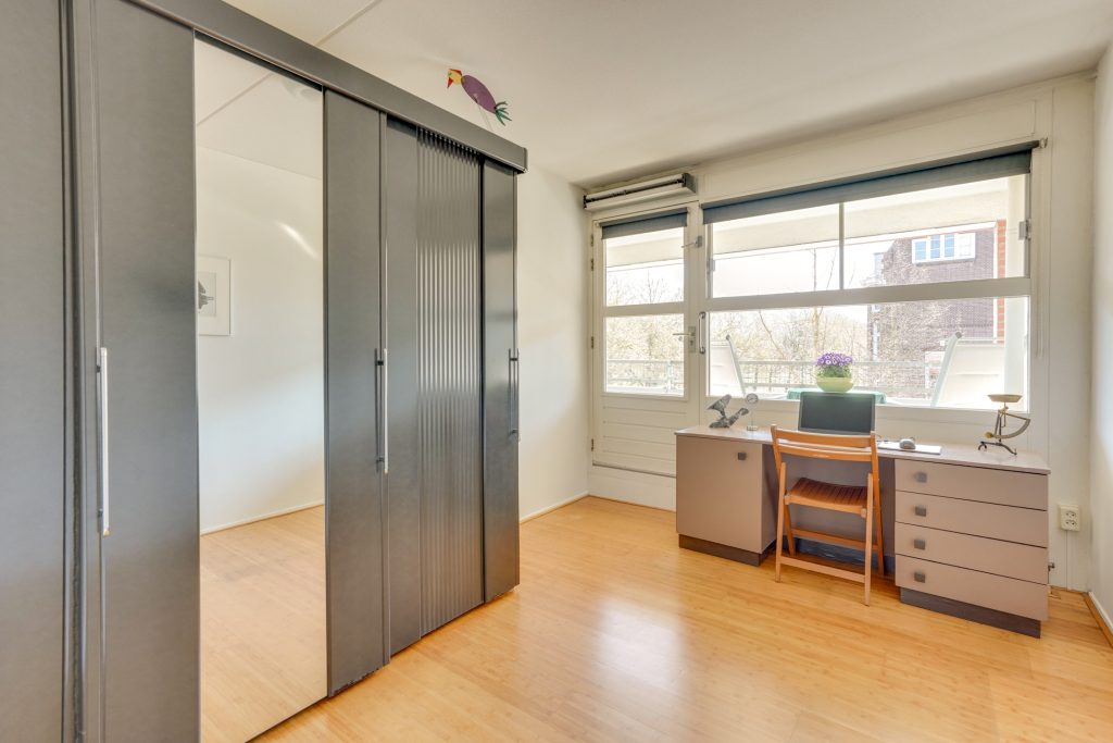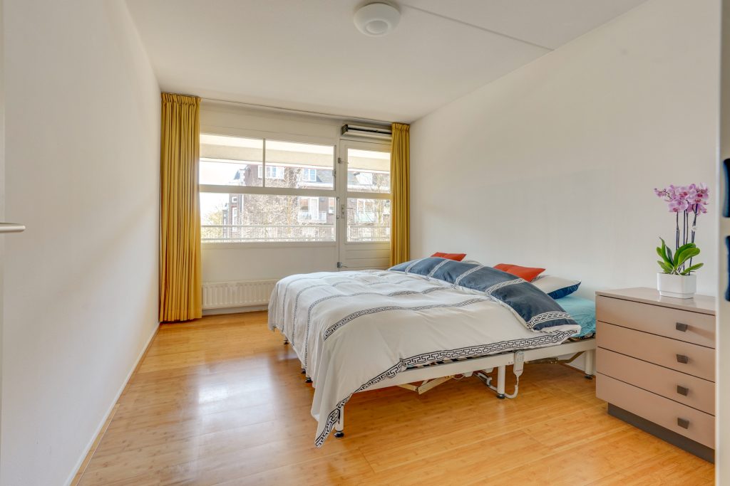 Aan de achterzijde van het appartement liggen de twee slaapkamers. Beide kamers hebben een prettig formaat en bieden voldoende ruimte voor een comfortabel slaapvertrek. Vanuit de woonkamer en beide slaapkamers is het balkon op het zuidoosten bereikbaar. Hier kun je heerlijk buiten zitten en genieten van de zon en de rustige omgeving, een fijne plek om de dag te beginnen met een kop koffie of deze af te sluiten met een goed glas wijn. Vanuit de hal zijn daarnaast de badkamer en het separate toilet bereikbaar. De badkamer is voorzien van een bad, inloopdouche en een wastafel. Tevens beschikt het appartement over een praktische berging met aansluiting voor de wasmachine, ideaal voor extra opslag.