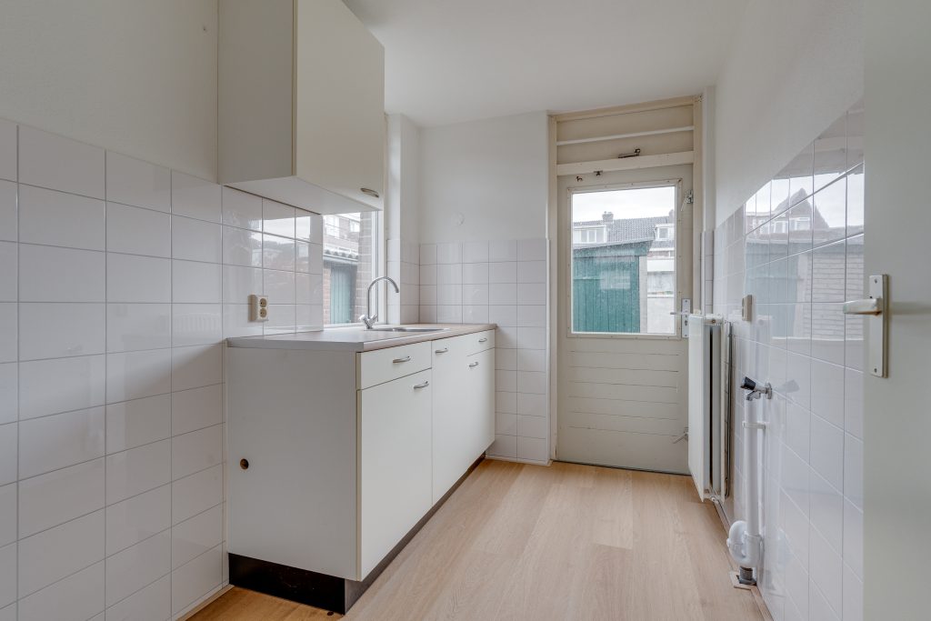 Bij binnenkomst in de woning word je verwelkomd in de entree, die toegang biedt tot alle vertrekken, waaronder het toilet, de keuken en de ruime woonkamer. De woonkamer bevindt zich aan de rechterzijde van de entree en biedt volop mogelijkheden om een sfeervolle en comfortabele leefruimte te creëren. Vanuit de woonkamer heb je direct toegang tot de ruime achtertuin. De keuken, die naast de woonkamer is gelegen en met een deur wordt afgesloten, zorgt voor een praktische indeling en extra privacy. Ook vanuit de keuken is er toegang tot de tuin, die is voorzien van een ruime berging, ideaal voor het opbergen van fietsen, tuingereedschap en overige spullen.