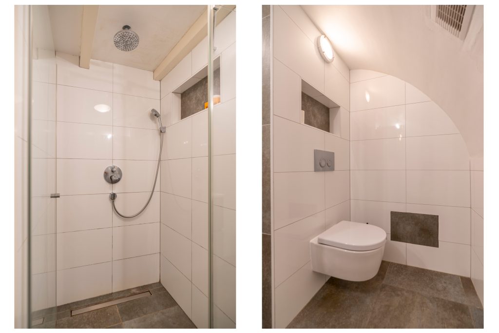 Via de trap in de hal óf rechtstreeks via de tuin daal je af naar het souterrain, waar de sfeer van het huis zich op een verrassende manier voortzet. Op deze woonlaag kom je binnen op een ruime overloop die toegang geeft tot de verschillende vertrekken. Overal vallen direct de karaktervolle balkenplafonds op, die dit niveau een warme en authentieke uitstraling geven. Aan de voorzijde bevindt zich de badkamer, voorzien van douche, wastafel en toilet, én een ruime slaapkamer met een vaste kast langs de volle breedte. In het midden van het souterrain ligt nog een royale slaapkamer, ideaal als hoofdslaapkamer of logeerkamer. Vanuit deze kamer heb je tevens toegang tot het kantoor aan de achterzijde, dat beschikt over openslaande deuren naar de tuin. Aangrenzend aan het kantoor ligt nog een extra kamer, die vanuit meerdere ruimtes bereikbaar is en daardoor zeer flexibel te gebruiken is, bijvoorbeeld als kinder-, logeer- of hobbykamer. Dankzij de praktische indeling, de vele kamers én de sfeervolle balkenplafonds biedt dit souterrain volop mogelijkheden om naar eigen wens vorm te geven. De tuin vormt een heerlijk verlengstuk van het wonen. Dankzij de ligging op het noordwesten kun je er vooral in de middag en avond genieten van de zon perfect voor een borrel of diner in de buitenlucht. Achterin staat een praktische berging, ideaal voor tuingereedschap. Zo creëren souterrain en tuin samen een volwaardig leefgedeelte waar comfort en buitenleven elkaar versterken.