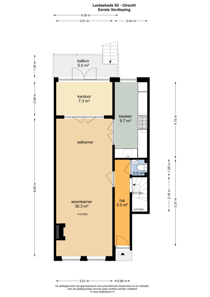 – Zeer ruime woonkamer over de gehele lengte van de woning;