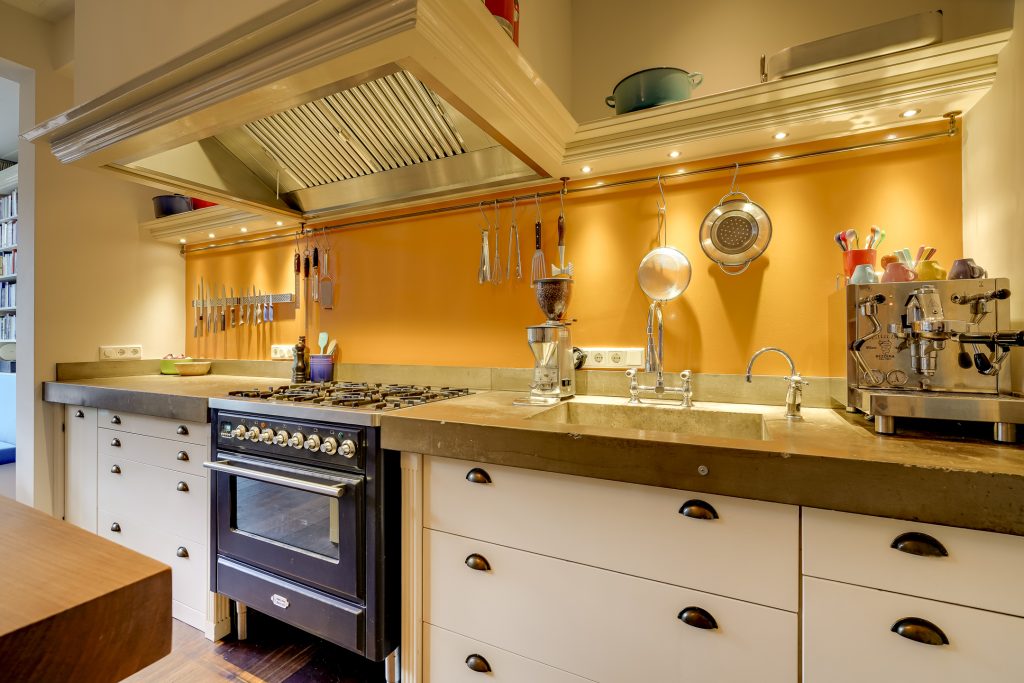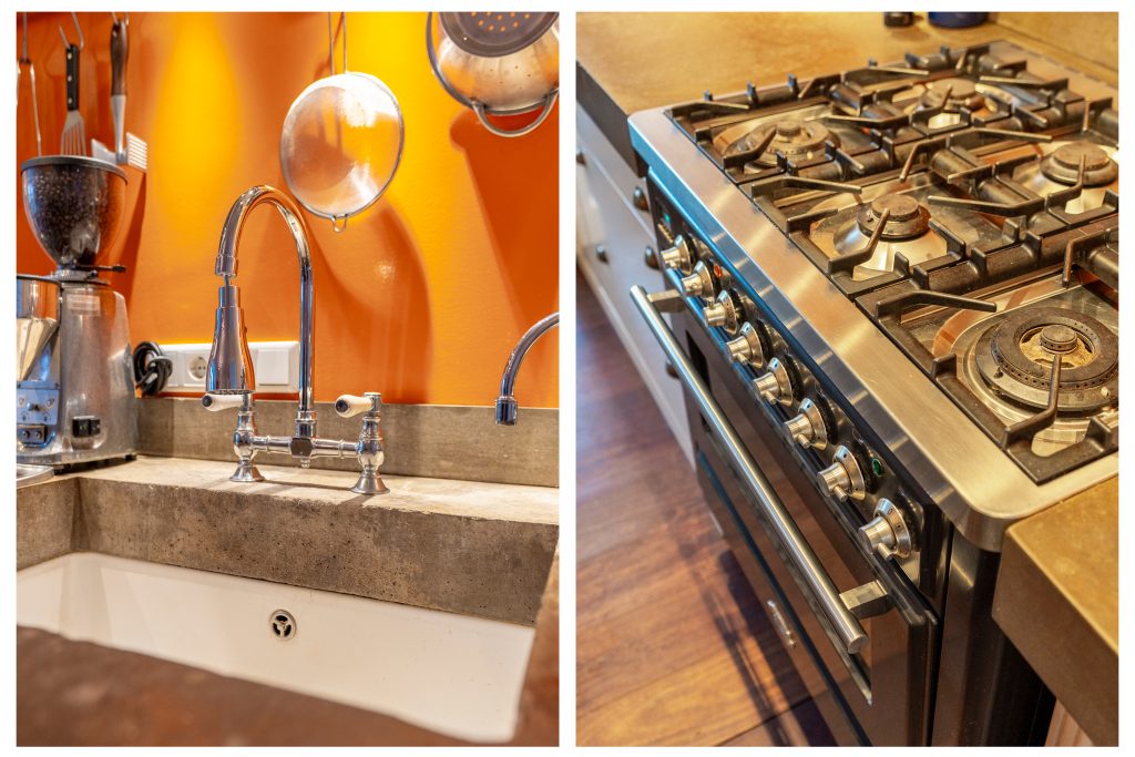 * Royale leefkeuken met kookeiland en Boretti-fornuis;