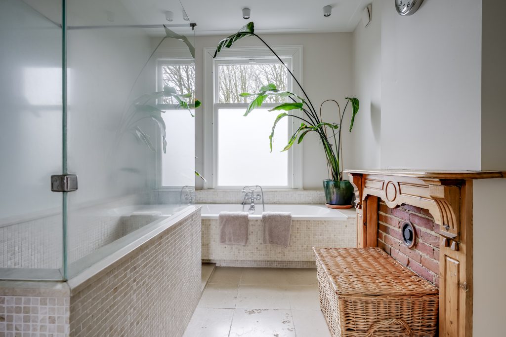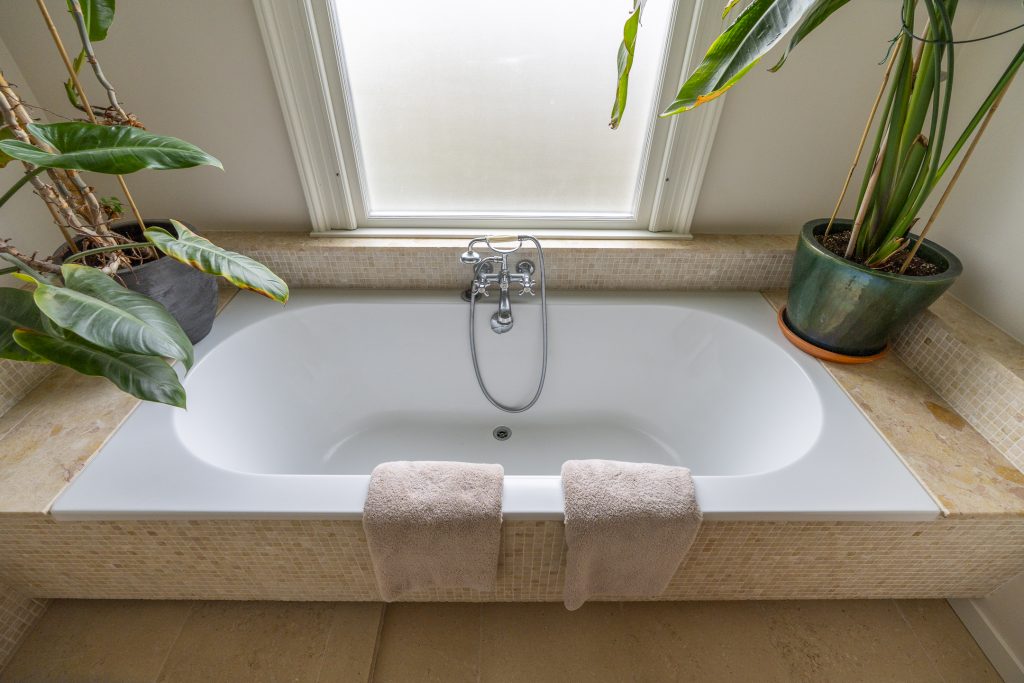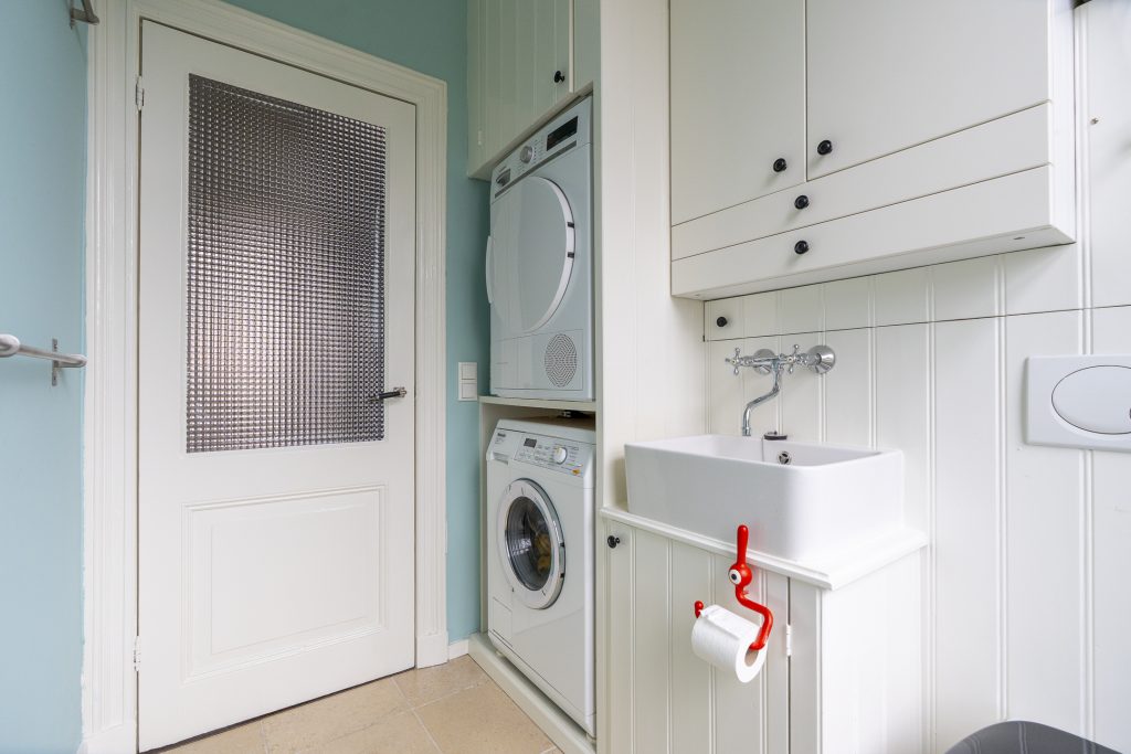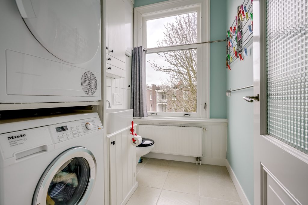 De royale badkamer is voorzien van een ligbad, aparte inloopdouche en wastafel. Dankzij het raam beschikt de ruimte over natuurlijke lichtinval en ventilatie, wat zorgt voor een frisse en aangename sfeer. Aan de voorzijde bevindt zich een compacte kamer die momenteel is ingericht als wasruimte. Hier vindt u de aansluiting voor de wasmachine en een extra toilet. Uiteraard kan deze ruimte ook anders worden benut, bijvoorbeeld als werkplek, hobbyruimte of praktische bergkamer.