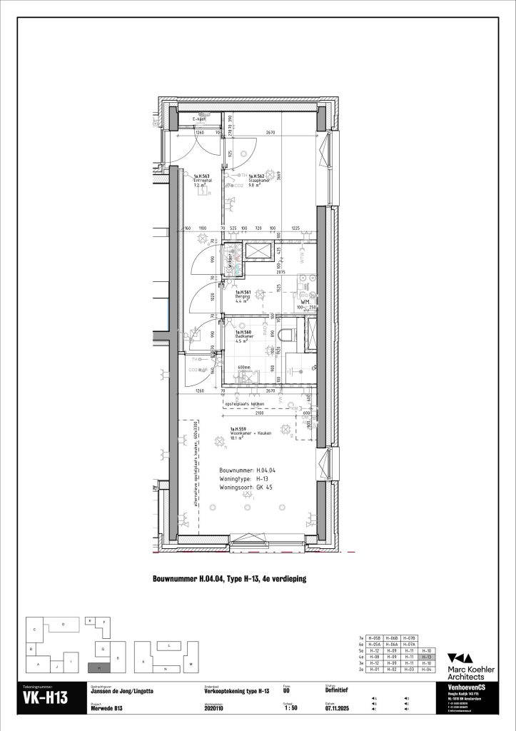 Pand F herken je aan het rode bakstenen gevelbeeld met ritmisch raamspel en zonnige balkons, en daarnaast een hoger bronskleurig volume met royale glaspartijen. Pand H is een rode bakstenen volume met diepe kozijnen en loggia’s vol groen. Beide bieden comfortabele stadswoningen van circa 47 tot 110 m², vrijwel allemaal met een eigen buitenruimte én toegang tot een gezamenlijk dakterras en allemaal met energielabel A++(+).