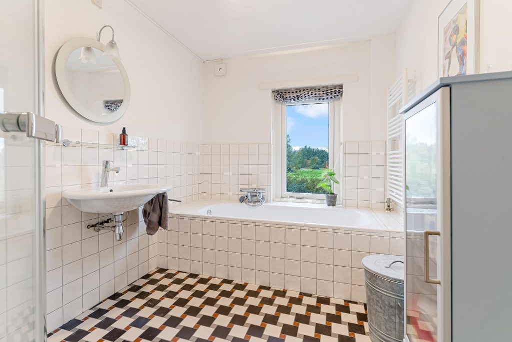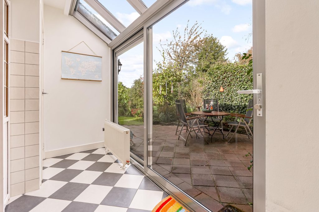 Vanuit de keuken loopt u naar de aangebouwde schuur en verder direct de tuin in.