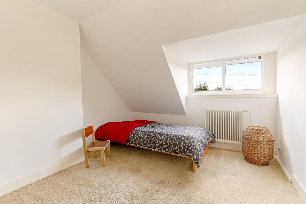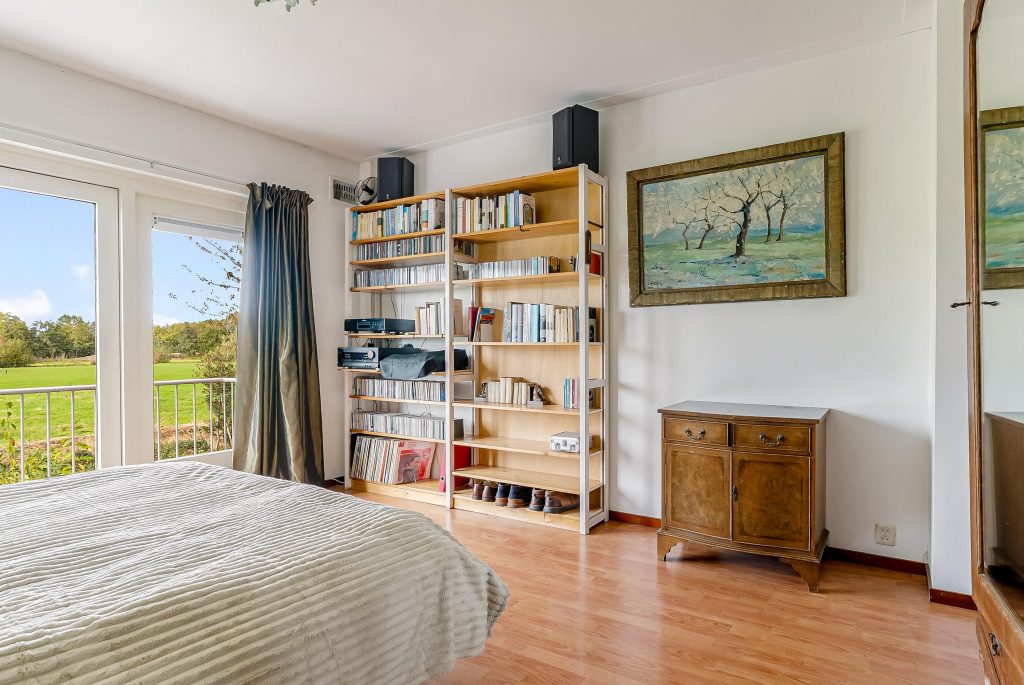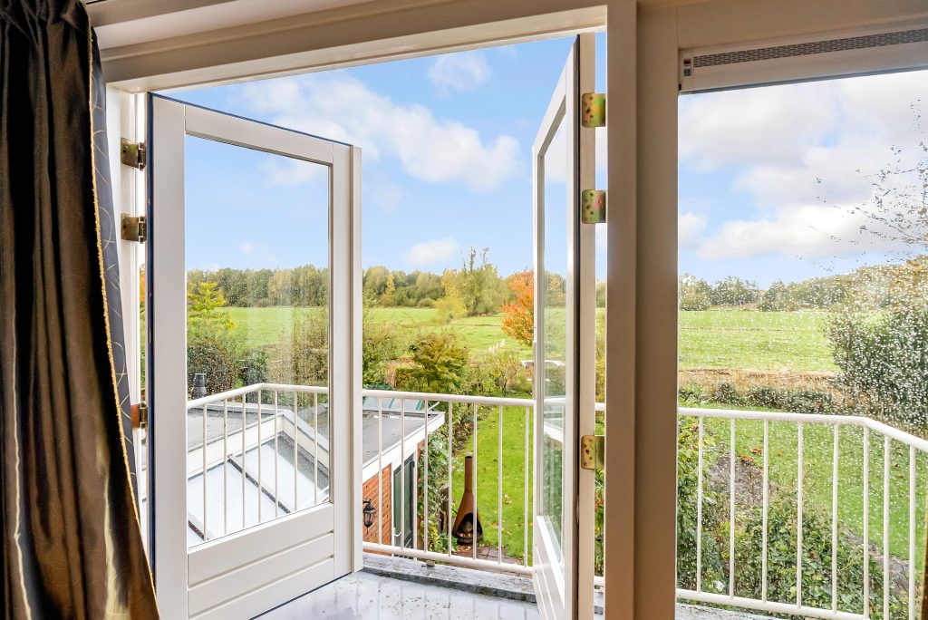 De grote slaapkamer aan de achterzijde beschikt over openslaande deuren naar een balkon met adembenemend uitzicht over het natuurgebied. De slaapkamer aan de voorzijde heeft eveneens een balkon en veel lichtinval. De badkamer is uitgerust met een ligbad, douche en wastafel; het tweede toilet bevindt zich apart op de overloop.