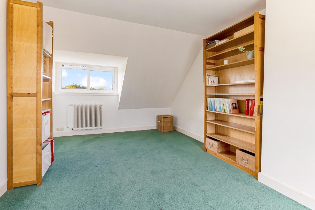 Via een uitschuiftrap bereikt u de praktische vliering – ideaal voor extra opslag.
