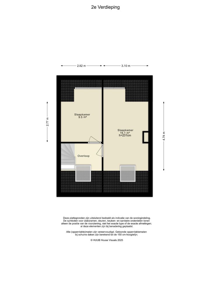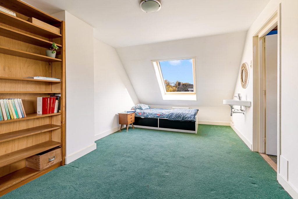 De tweede verdieping is verrassend ruim dankzij de dakkapel aan de achterzijde. Hier bevinden zich twee slaapkamers van ca. 9,5 m² en 16,1 m². Op de voorzolder is extra ruimte aanwezig. Er is ook een dakraam voor daglicht.