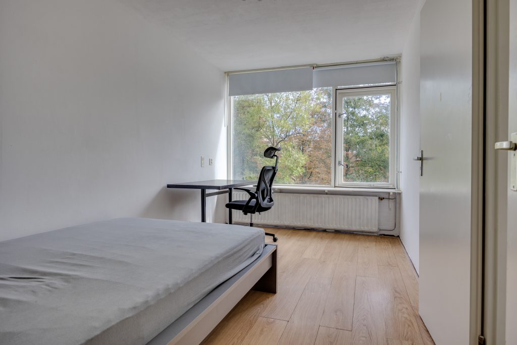 Het appartement beschikt over twee slaapkamers van goed formaat. De grootste slaapkamer biedt ruimte voor een tweepersoonsbed en een kledingkast. De tweede slaapkamer is geschikt als logeer- of werkkamer en beschikt over een eigen wastafel. Kortom, een prettig ingedeeld appartement met een lichte woonkamer, balkon op het westen en twee volwaardige slaapkamers een fijne plek om comfortabel te wonen.