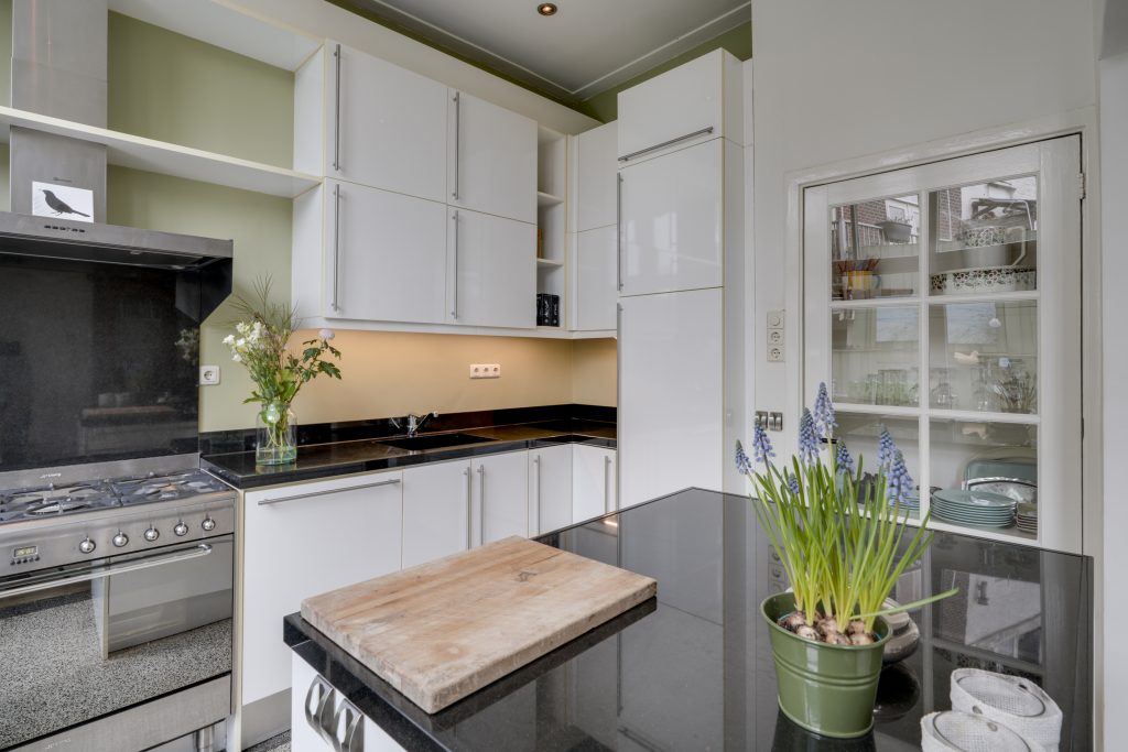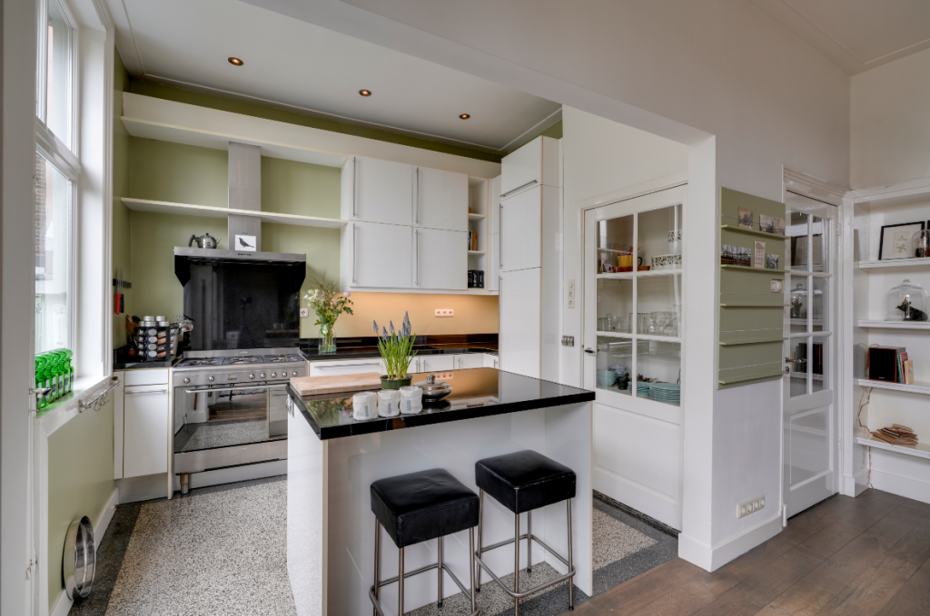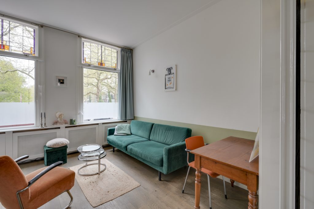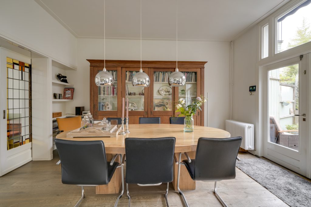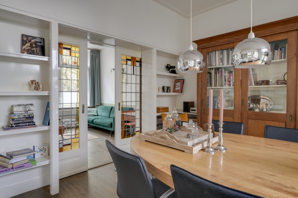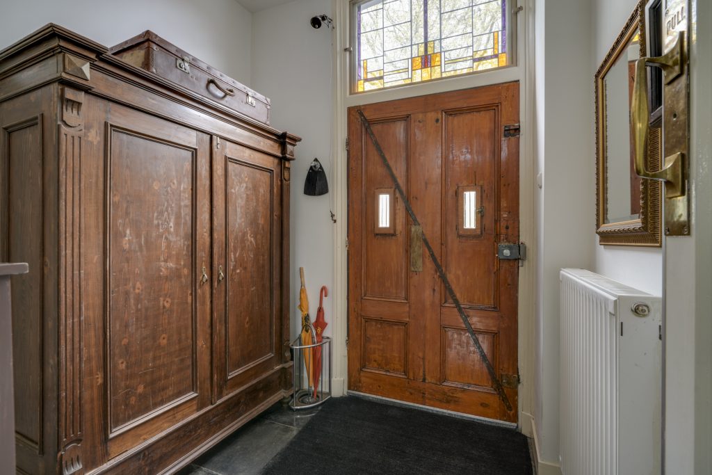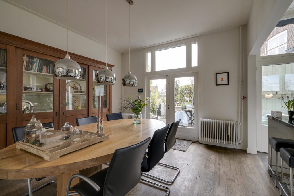 U betreedt de woning via de klassieke entree en komt in een ruime hal met een fraaie trapopgang en toegang tot de KELDER op stahoogte – ideaal voor opslag of als hobbyruimte. Aan de voorzijde bevindt zich de sfeervolle woonkamer met karakteristieke glas-in-loodramen. Via de originele kamer-en-suite deuren komt u in de royale eetkamer die middels openslaande deuren toegang biedt tot het terras en de achtertuin. De ruime keuken is voorzien van diverse inbouwapparatuur en een fijne vaste kast. Dankzij de royale opzet en het prachtige lichtinval is het hier heerlijk koken. Een ideale plek om samen met vrienden en familie te genieten van gezellige diners en lange avonden.