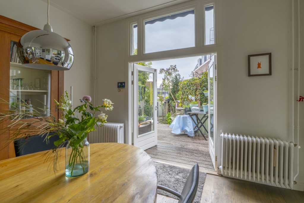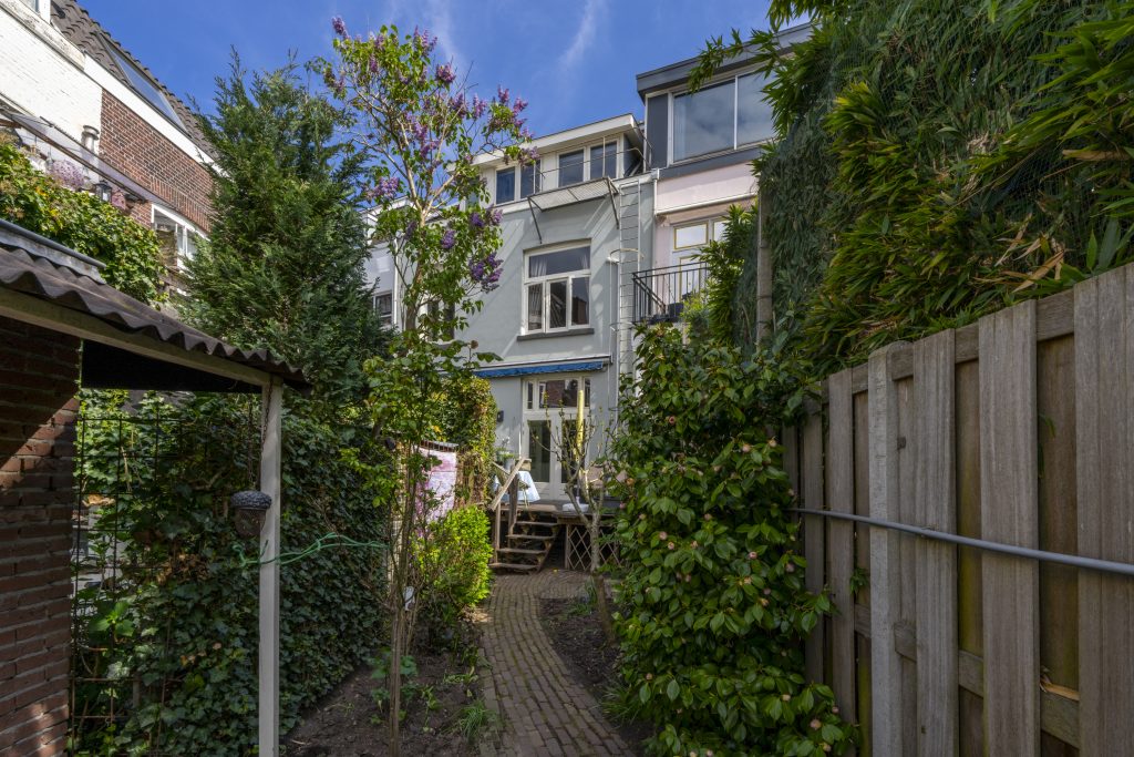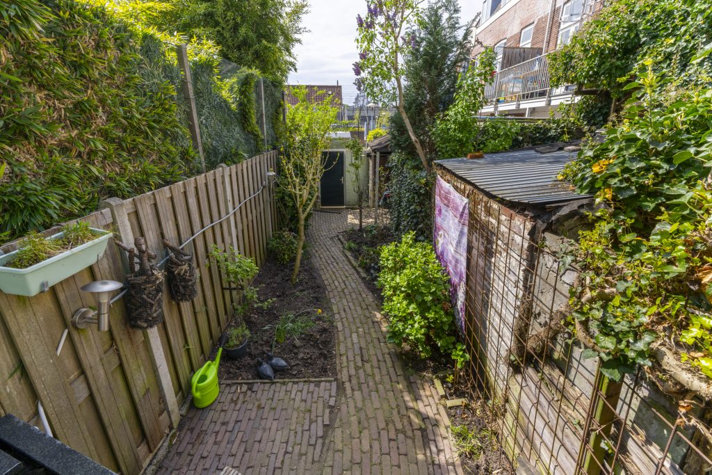 Aan de achterzijde wacht u een diepe, zonnige tuin op het westen met achterom – een echte oase midden in de stad, ideaal voor lange zomeravonden.