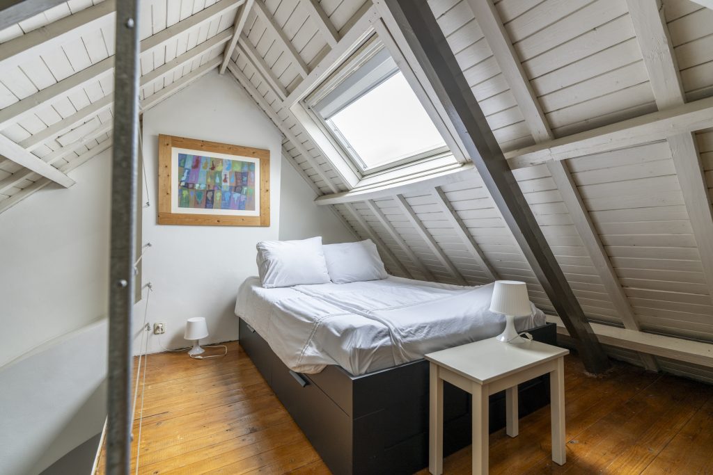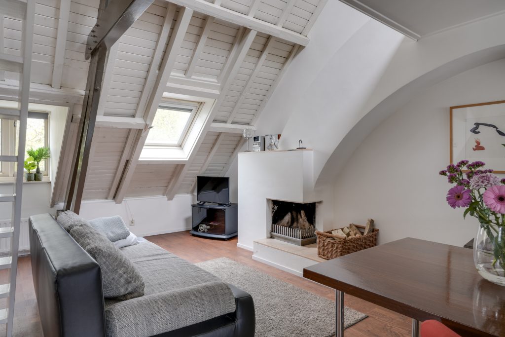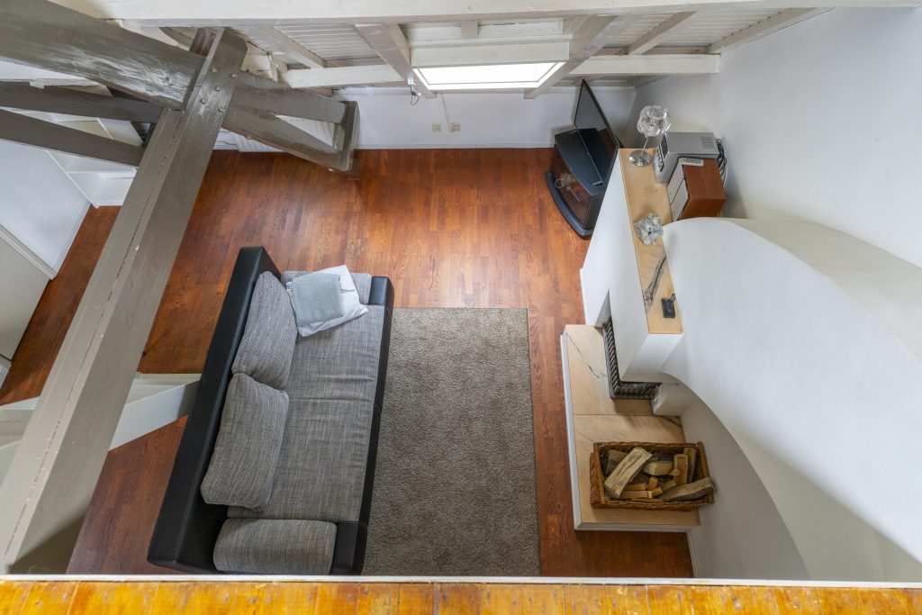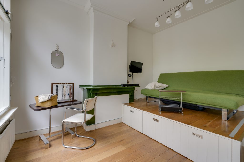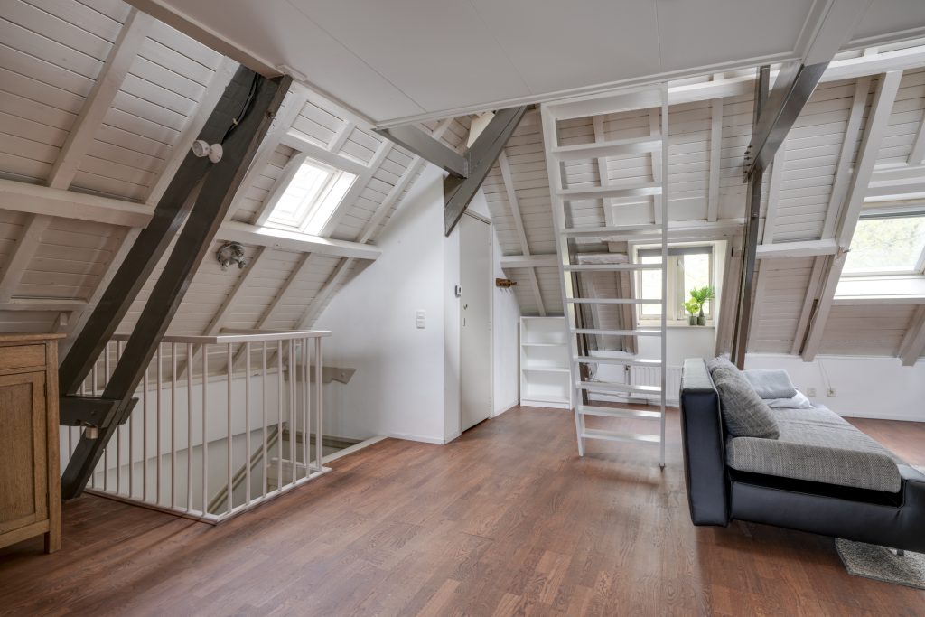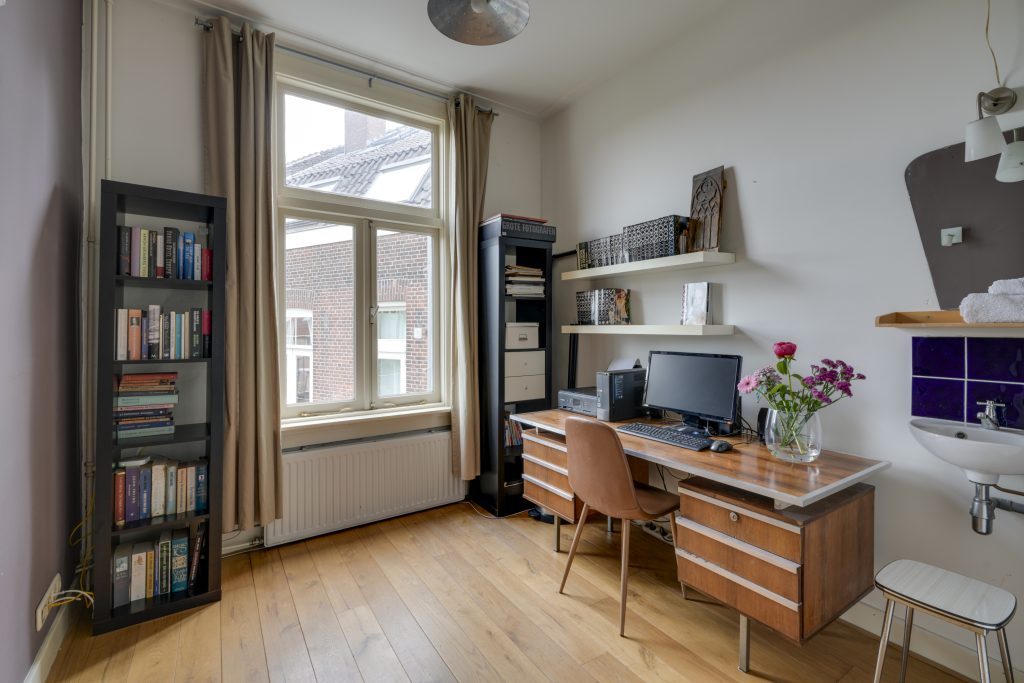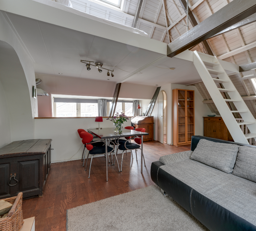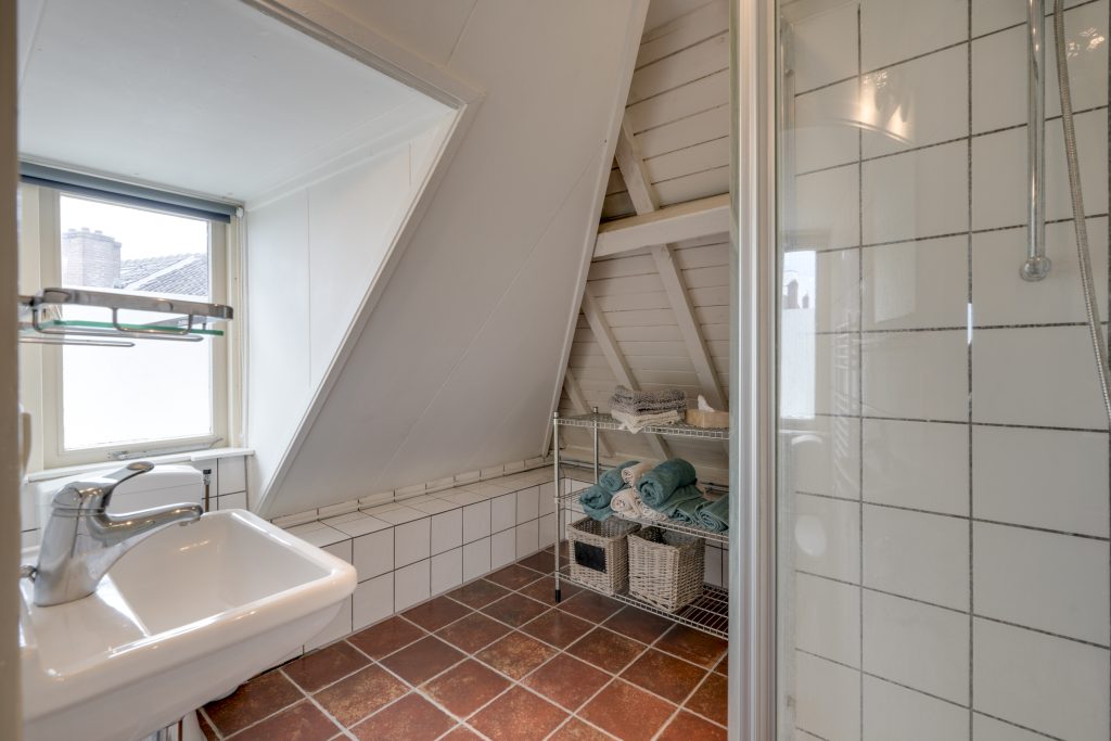 De tweede verdieping is indrukwekkend ruim (ca. 9,00 x 6,50 m) en biedt talloze mogelijkheden. Momenteel is hier een open ruimte met een sfeervolle slaapvide, een keukenblok, een dakkapel, een badkamer met toilet én een open haard, wat zorgt voor extra charme en comfort. Door de royale opzet kunt u hier eenvoudig meerdere kamers realiseren, zoals extra slaapkamers, een atelier of een kantoorruimte. Daarnaast bevindt zich op deze verdieping een praktische bergruimte met de cv-ketel en aansluiting voor de wasmachine. Deze etage is bij uitstek geschikt voor een inwonend, nog studerend kind of, binnen de mogelijkheden van de hospitaregeling, uitstekend geschikt voor (gedeeltelijke) verhuur.