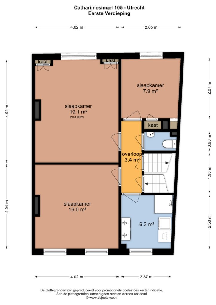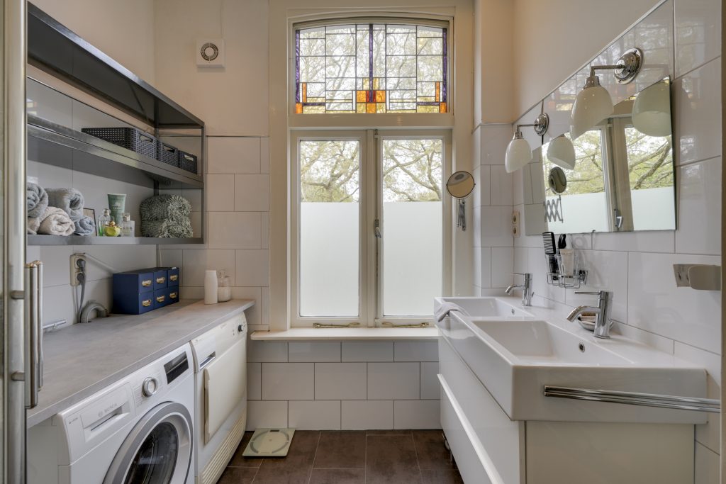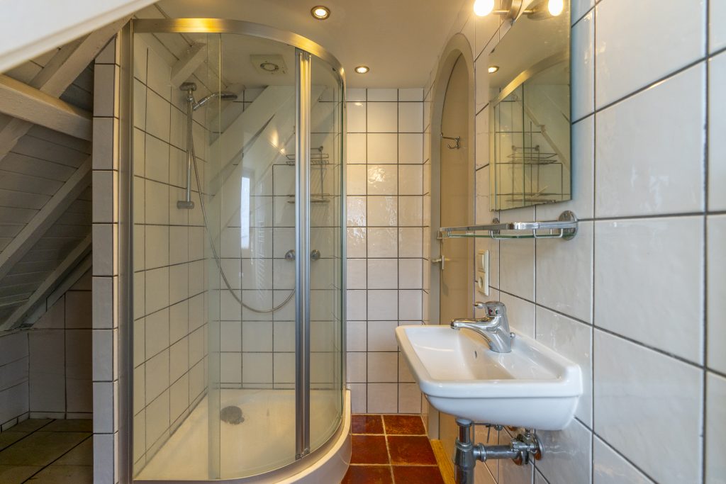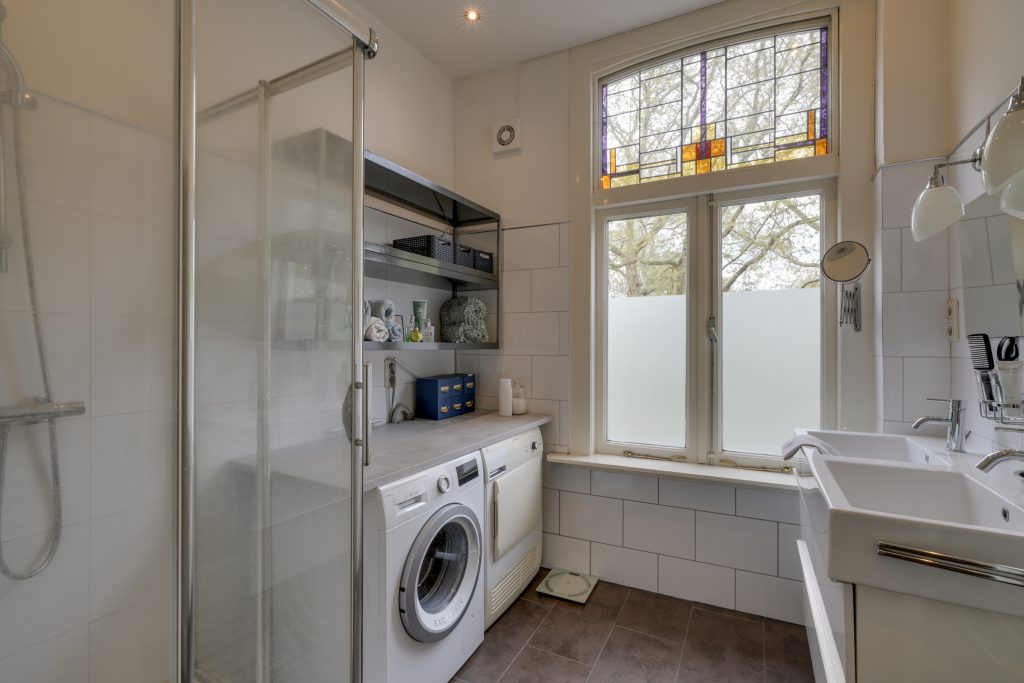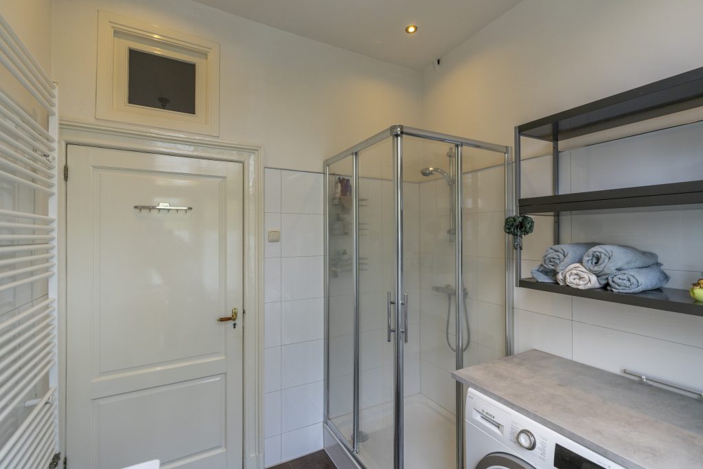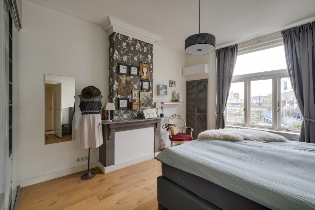 Op de eerste verdieping bevinden zich drie slaapkamers. De slaapkamer aan de voorzijde (ca. 4,04 x 4,02 m) beschikt over een charmante schouw. De zijkamer aan de achterzijde (ca. 2,87 x 2,85 m) is ideaal als kinderkamer, inloopkast of werkkamer. De royale slaapkamer aan de achterzijde (ca. 4,92 x 4,02 m) heeft eveneens een schouw, handige vaste kasten én is uitgerust met airconditioning – perfect voor extra comfort tijdens warme zomerdagen. De badkamer is voorzien van een heerlijke douche en een dubbele wastafel. In deze ruimte vind je ook de wasmachine- en drogercombinatie. Dankzij de grote raampartijen stroomt het natuurlijke licht rijkelijk naar binnen, waardoor de ruimte licht en aangenaam aanvoelt – een heerlijke plek om te ontspannen. Daarnaast is er op de overloop een tweede toilet aanwezig, wat extra comfort biedt.