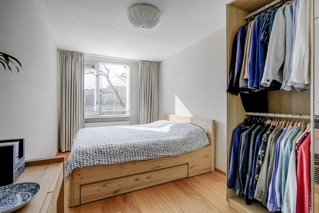 Verder beschikt het appartement over drie slaapkamers, waarvan twee ruime slaapkamers en een derde kamer die ideaal is te gebruiken als werk-, logeer- of kinderkamer. Centraal in het appartement gelegen badkamer is voorzien van een inloopdouche, wastafelmeubel en aansluitingen voor de wasmachine en droger.