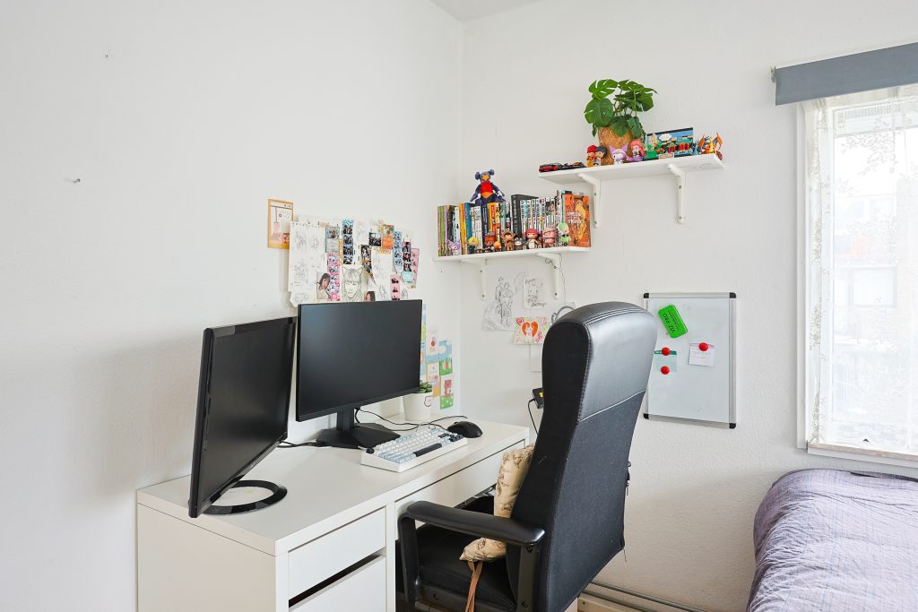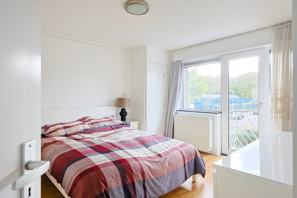 Op de eerste verdieping bevinden zich drie slaapkamers, ieder met hun eigen karakter. De grote slaapkamer aan de achterzijde grenst direct aan een balkon waar je uitkijkt op het groen van de wijk – een rustige plek om de dag te beginnen of af te sluiten. De andere kamers lenen zich uitstekend als kinder-, werk- of logeerkamer. De moderne badkamer is fris en comfortabel, met een ruime douche en een tweede toilet.