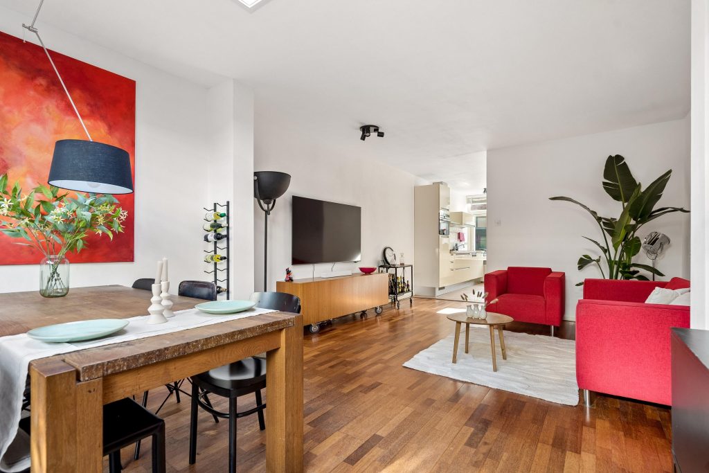 De woonkamer met lichtinval voor en achter van circa 33 m² groot vormt het hart van de woning. Dankzij de grote raampartijen valt er veel daglicht naar binnen en voelt de ruimte prettig open aan. Hier is volop plek voor zowel een ruime zithoek als een eettafel. Via de achterzijde van de woonkamer heb je direct toegang tot de tuin, waardoor binnen en buiten mooi in elkaar overlopen.