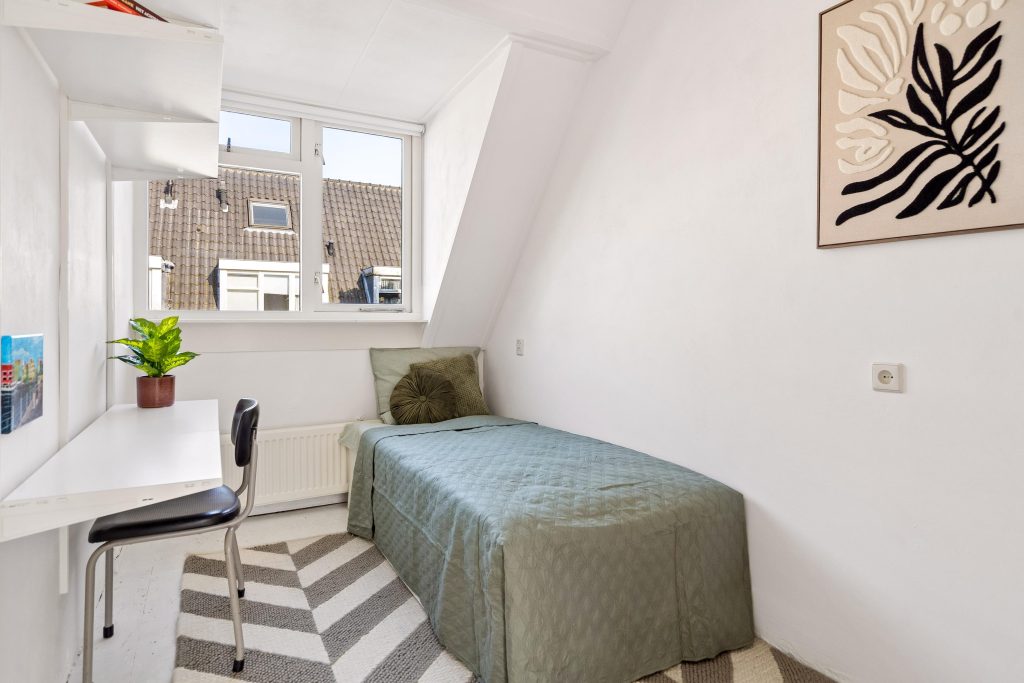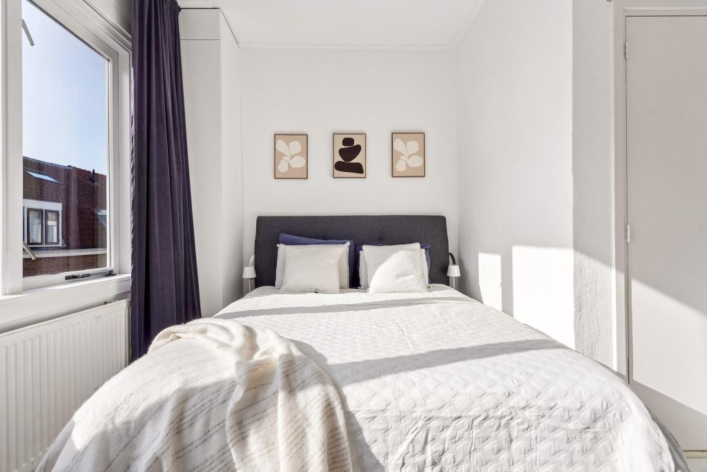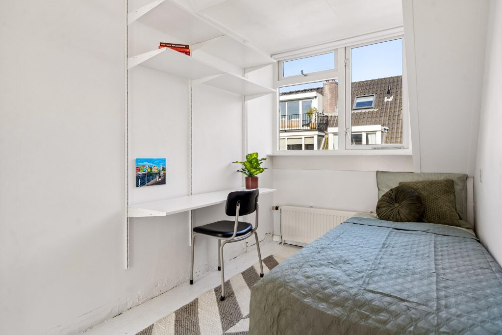 Op de eerste verdieping bevinden zich twee slaapkamers van circa 13 m² en 8 m². De grootste slaapkamer ligt aan de voorzijde van de woning en biedt voldoende ruimte voor een tweepersoonsbed en een kledingkast. De tweede kamer is ideaal als werk-, logeer- of kinderkamer. Op deze verdieping bevindt zich ook de badkamer met douche en wastafel, evenals een separaat toilet.