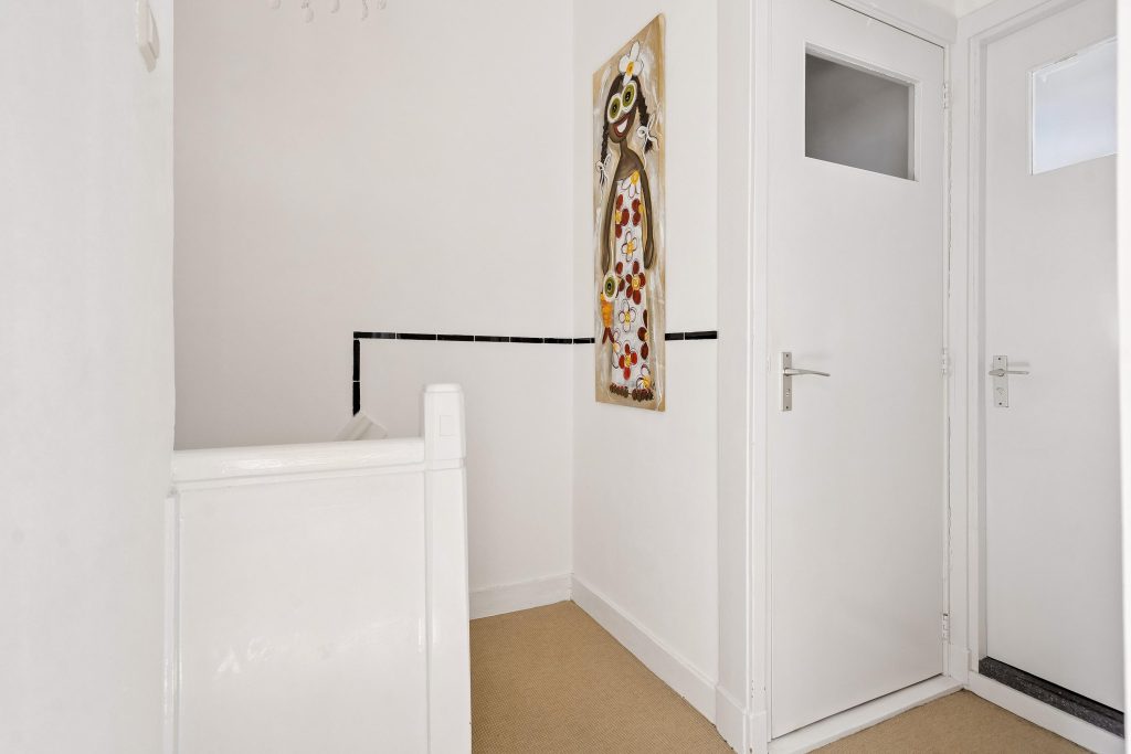 Aan de voorzijde van de woning bevindt zich de keuken. Deze is praktisch ingericht met diverse inbouwapparatuur en voldoende werk- en kastruimte. Hier kook je comfortabel terwijl je zicht hebt op de straat.